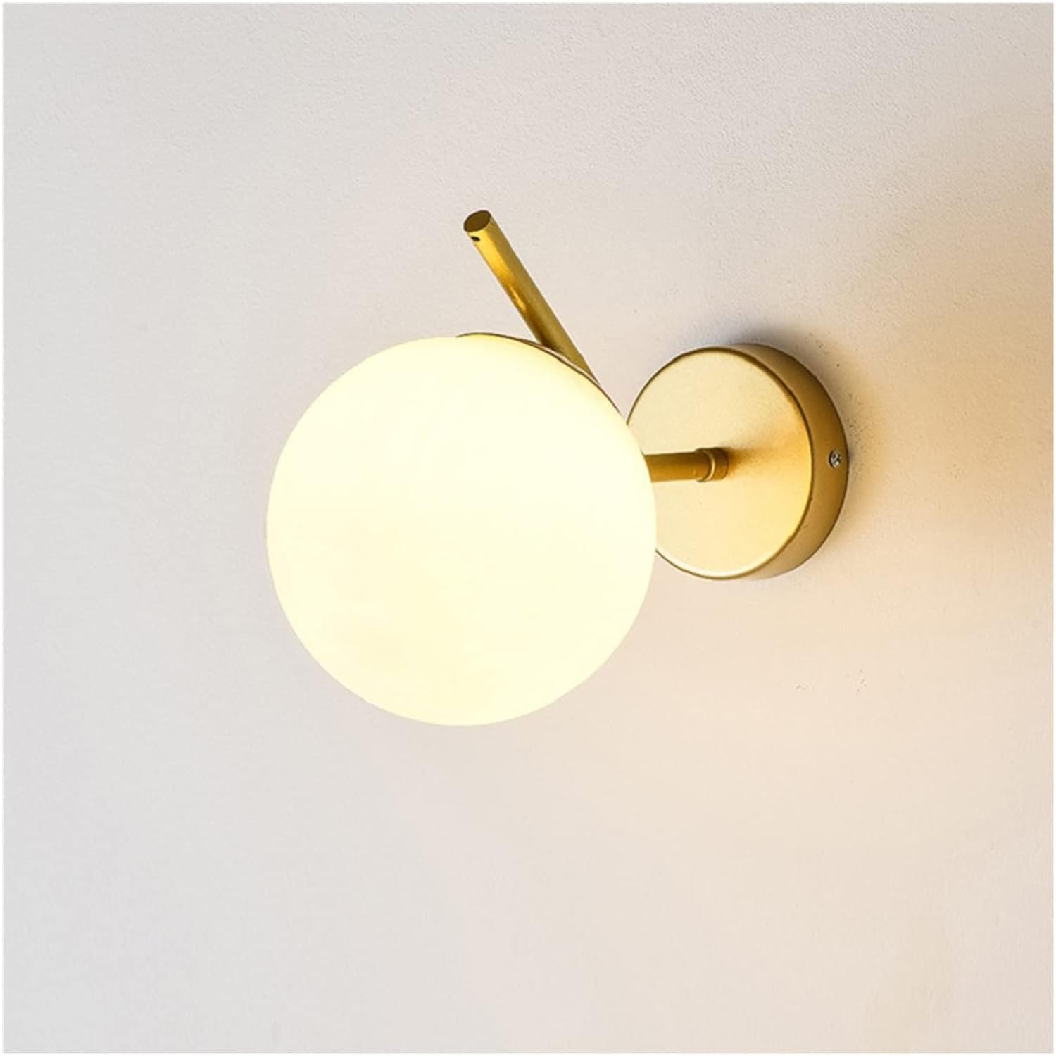 Son design doré moderne et son globe en verre opalin diffusent une lumière douce et chaleureuse, idéale pour créer une ambiance raffinée dans le salon, la chambre ou le couloir.