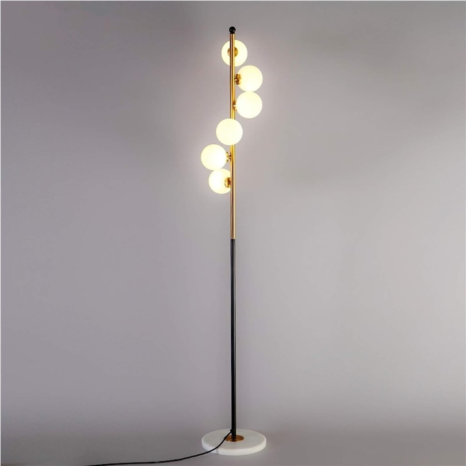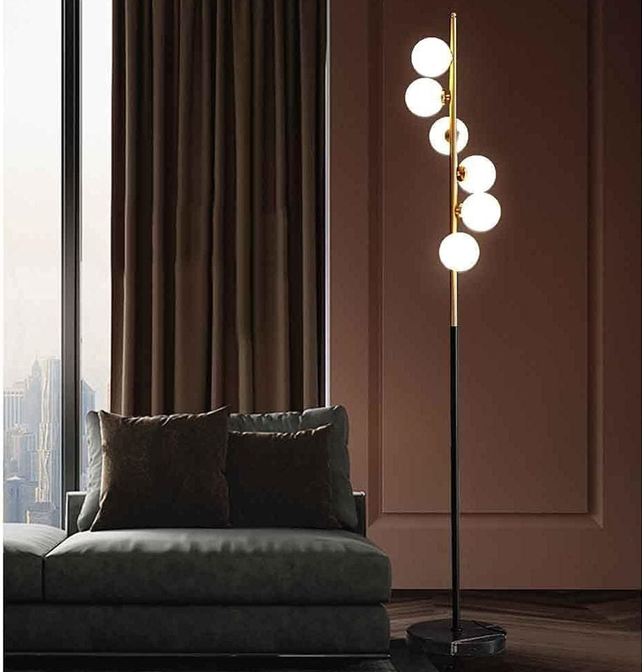 Le Lampadaire BUBBLY est une pièce décorative forte qui apporte une touche élégante et contemporaine à votre intérieur. Doté de 6 boules en verre opale, il diffuse une lumière douce, homogène et non éblouissante, idéale pour créer une ambiance chaleureuse et raffinée.