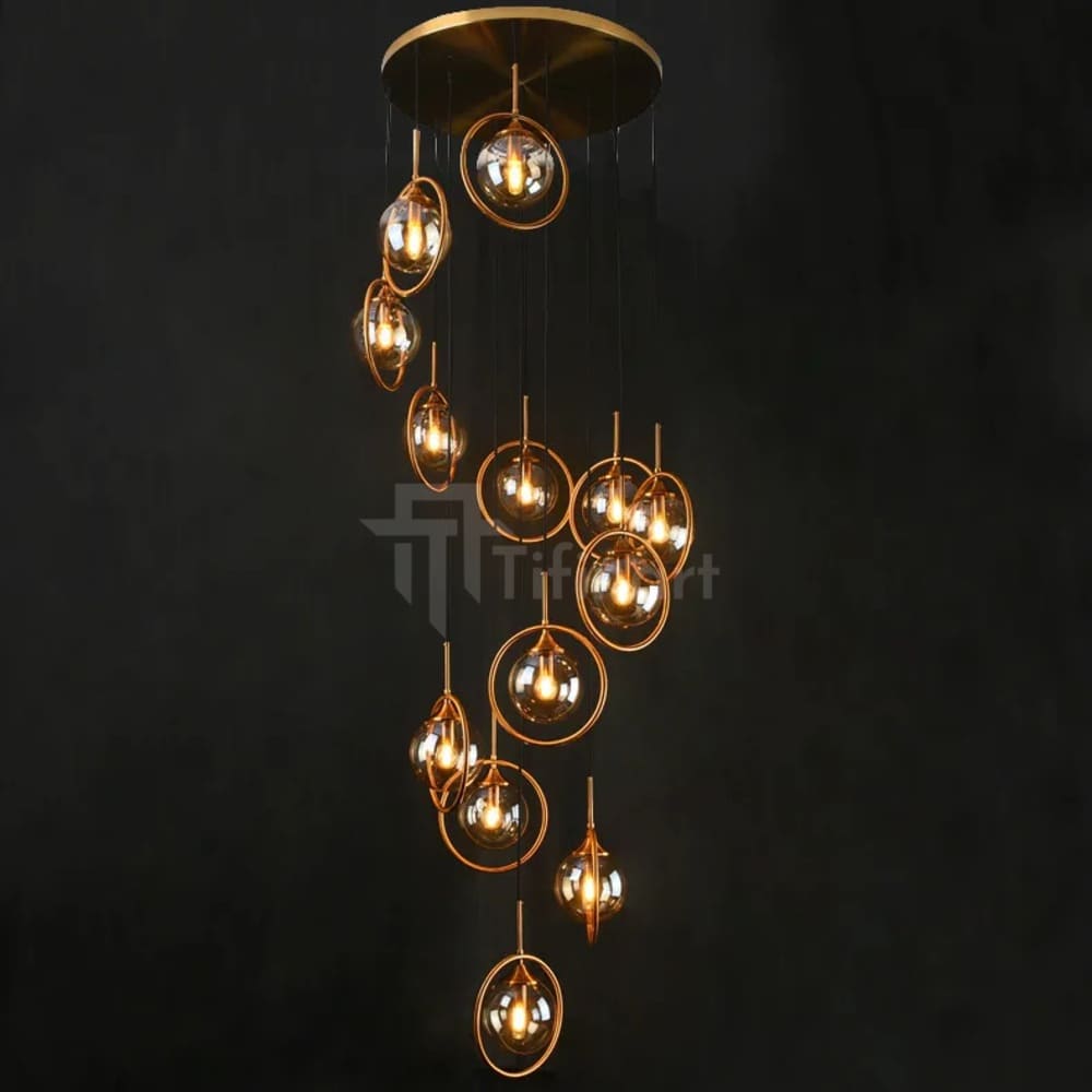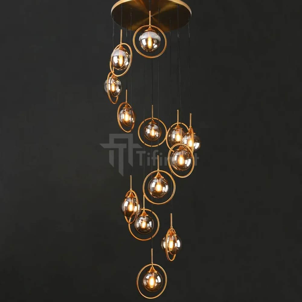 La suspension ARMANI séduit par son design aérien et son équilibre parfait entre modernité et chaleur. Ses 13 boules en verre satiné ambre diffusent une lumière douce et enveloppante, idéale pour créer une atmosphère élégante et apaisante dans votre salon, salle à manger ou entrée.
