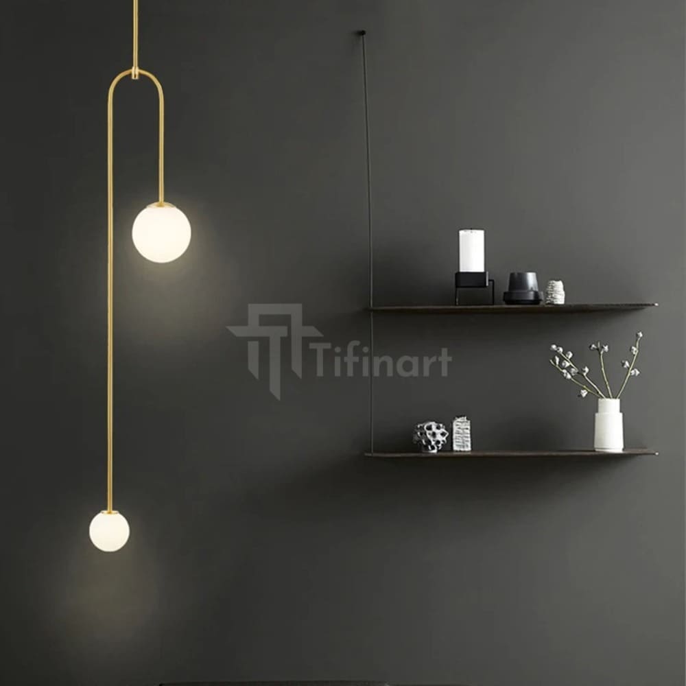 La suspension ELMORE se distingue par son design unique à deux globes et sa structure dorée satinée. Avec ses formes épurées et sa finition raffinée, elle apporte une touche moderne et sophistiquée à votre intérieur.