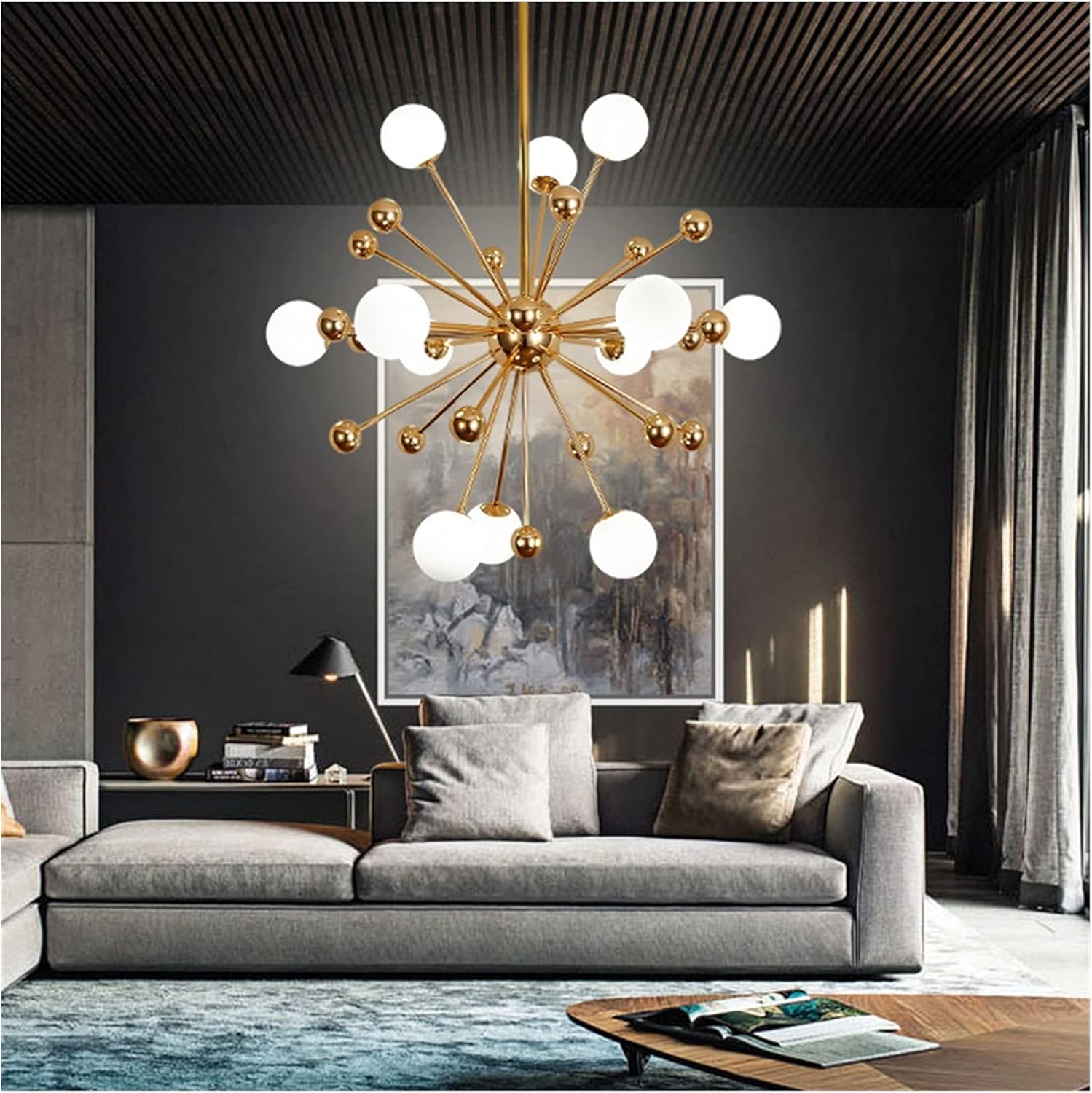 La suspension GALAXY combine 11 boules en verre opale et des boules dorées, créant un design moderne et cosmique rappelant la beauté d’une galaxie. Sa structure élégante diffuse une lumière douce et harmonieuse, parfaite pour instaurer une ambiance unique et raffinée dans votre intérieur.