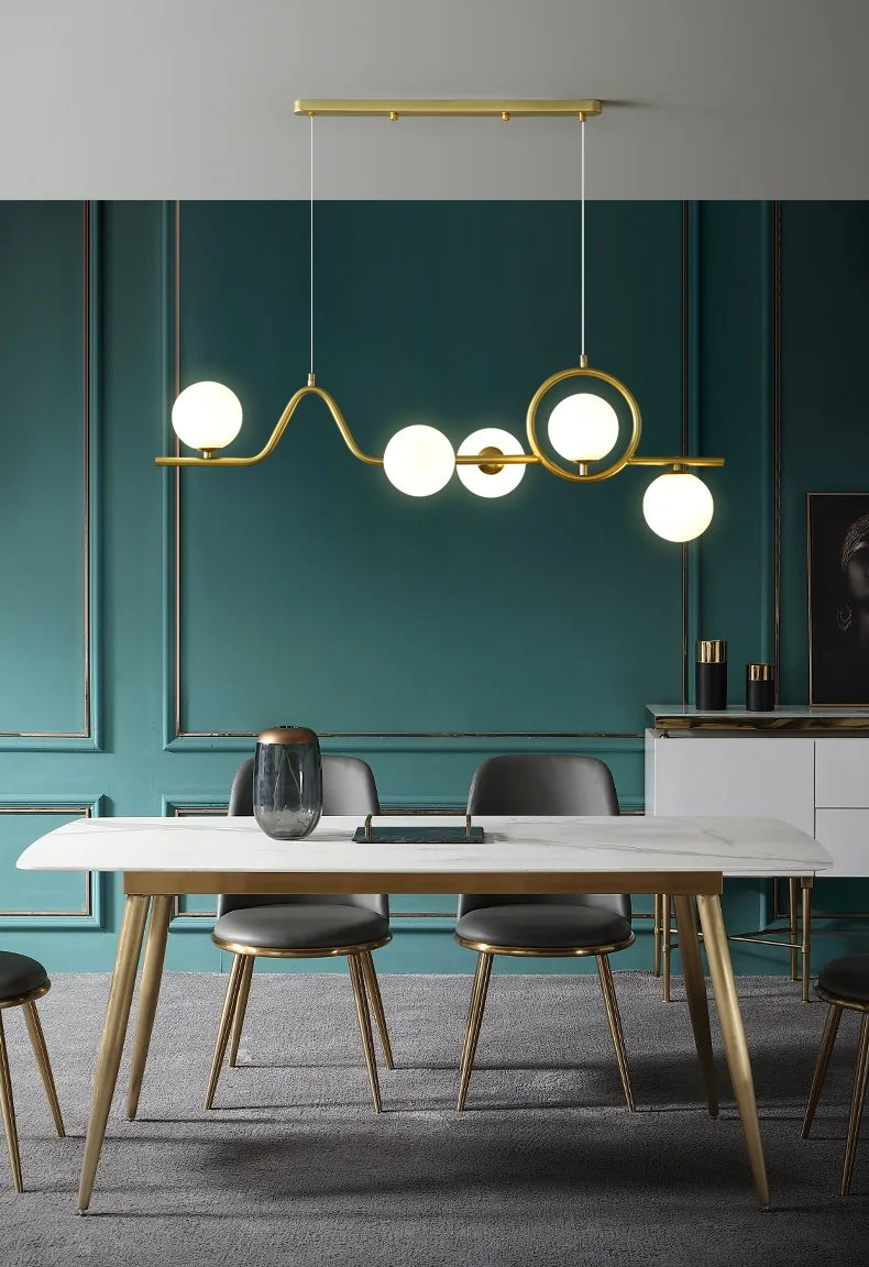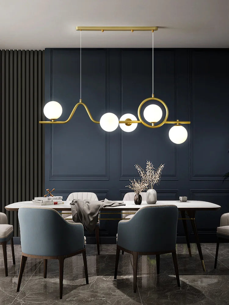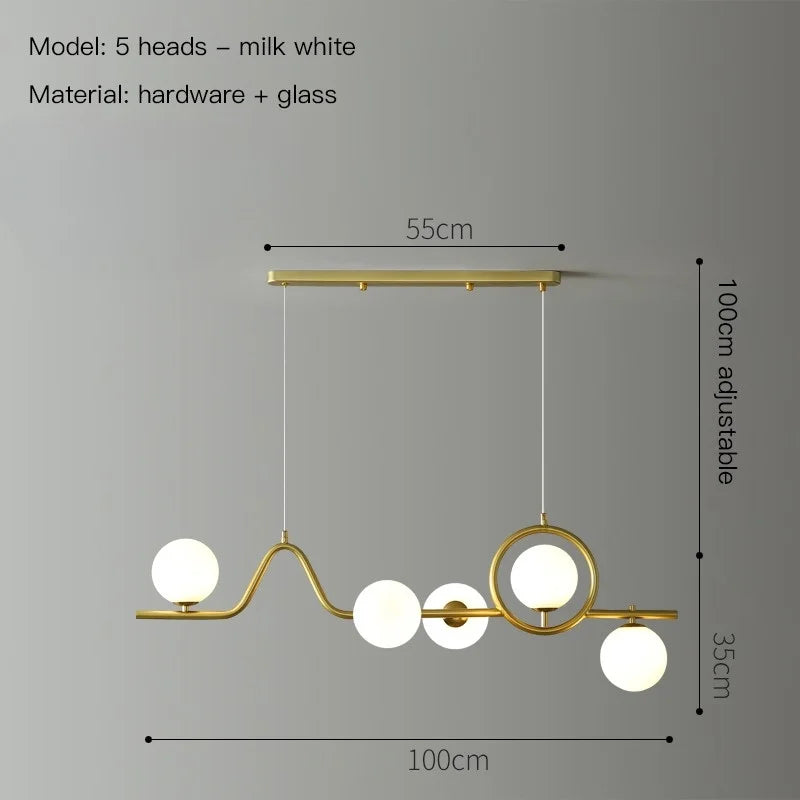 La suspension LUMIVA allie élégance et douceur. Ses boules en verre opale diffusent une lumière apaisante, tandis que sa structure dorée apporte une touche de raffinement et de modernité à votre intérieur.