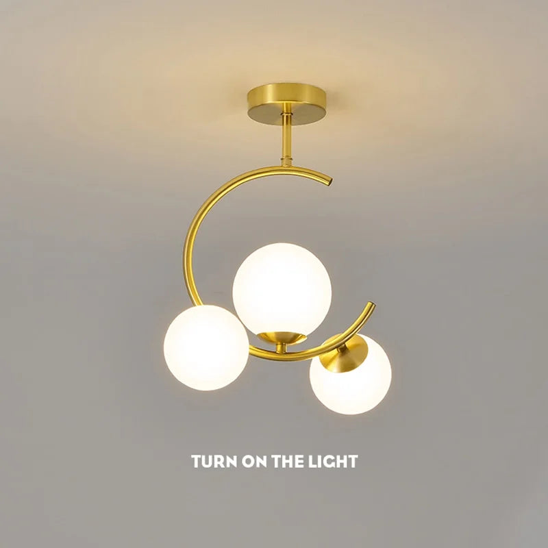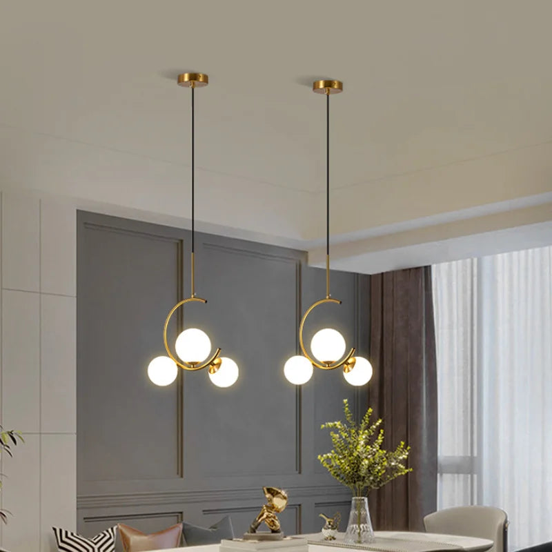 La suspension TUDA associe une structure dorée élégante des boules en verre opale pour un rendu à la fois moderne et raffiné. Son design minimaliste diffuse une lumière douce et harmonieuse, idéale pour créer une ambiance apaisante.