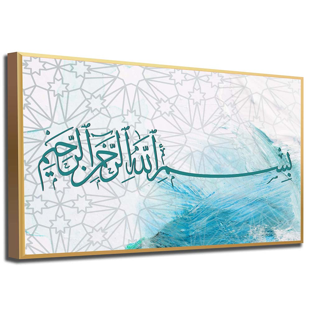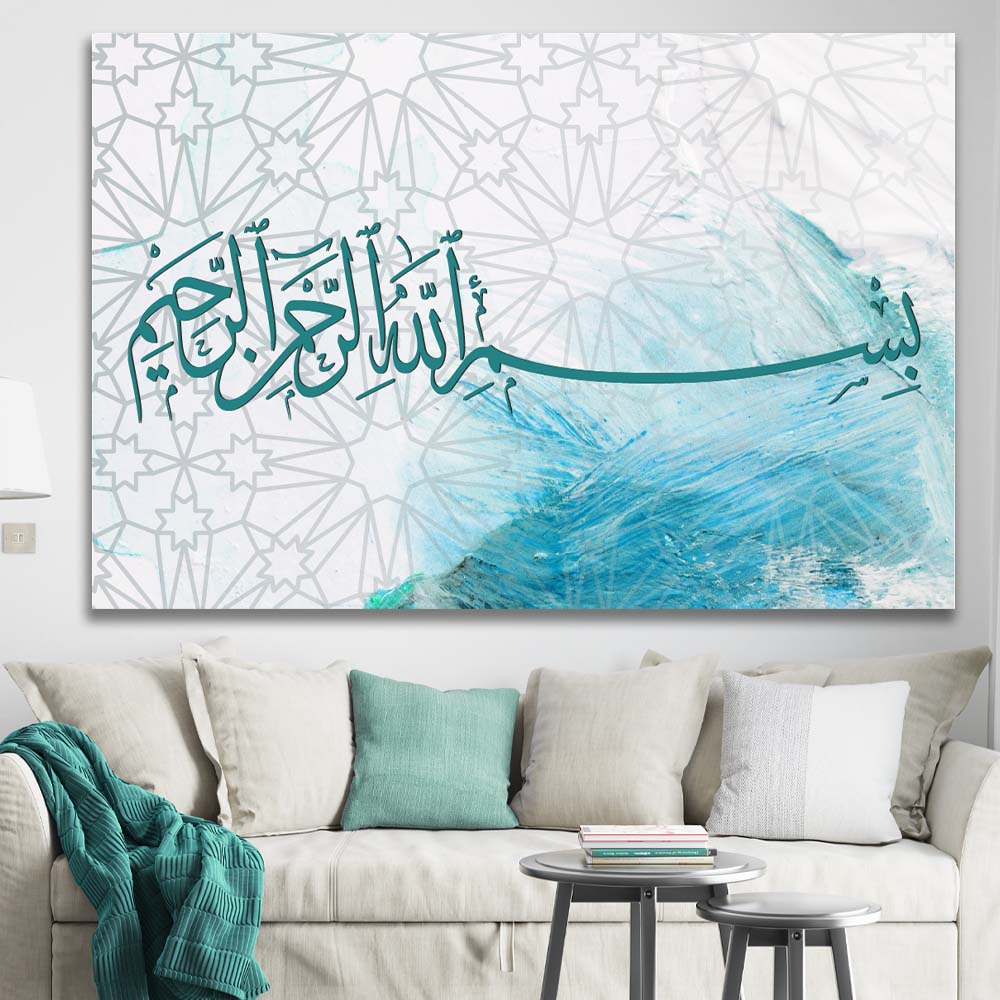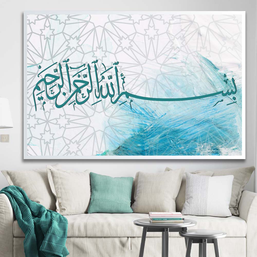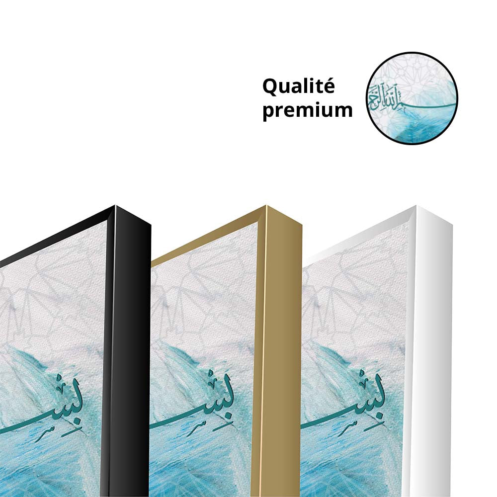Le tableau BASMALAH présente une calligraphie islamique aux couleurs harmonieuses, élégantes et apaisantes, intégrant le texte sacré بسم الله الرحمن الرحيم. Ce mélange crée une atmosphère spirituelle et captivante, parfaite pour apporter du caractère et un style moderne à n’importe quel espace.