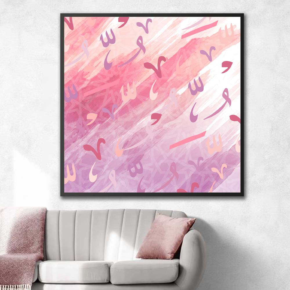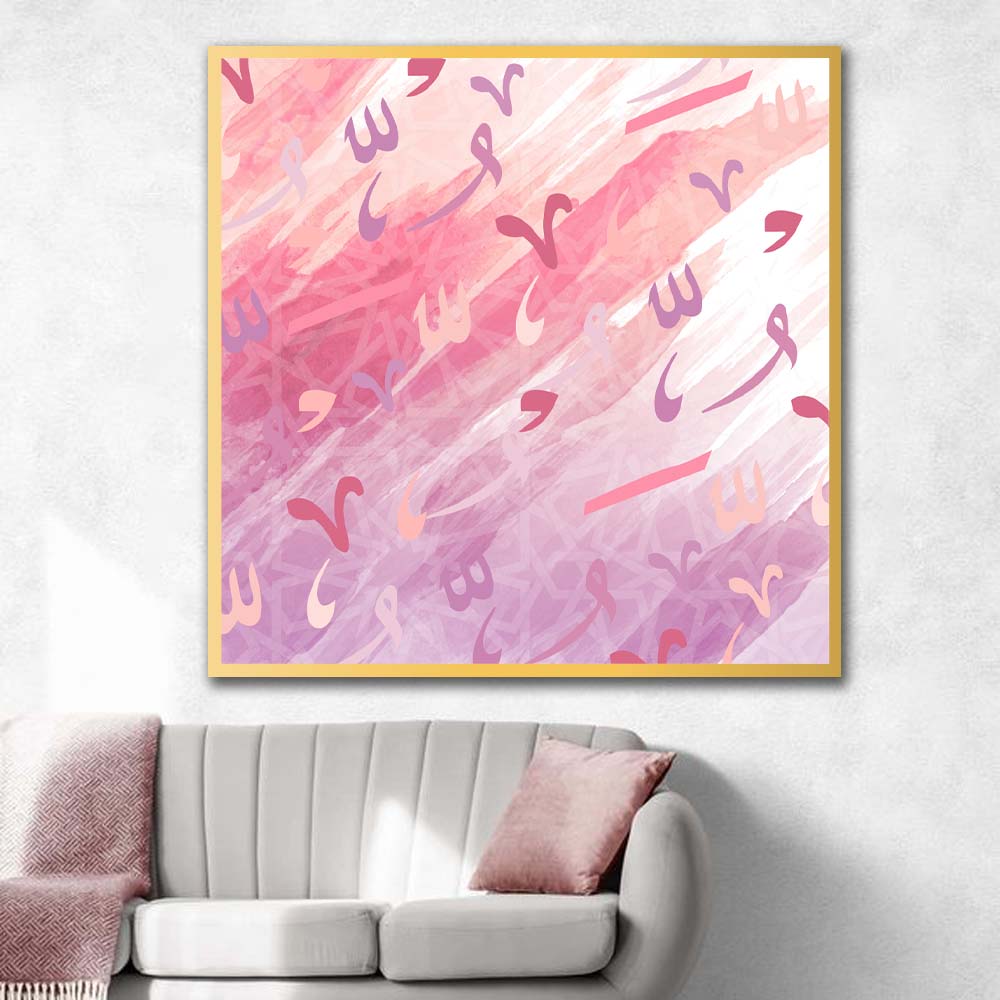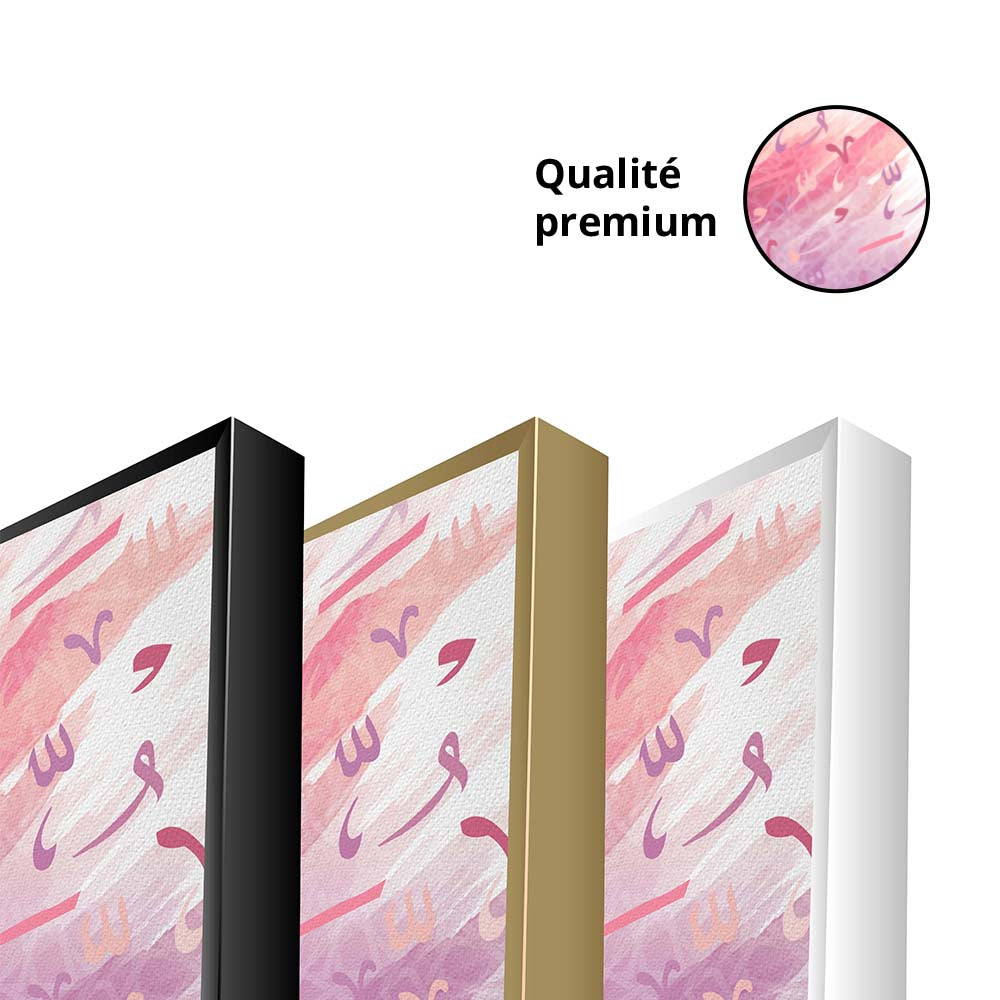 Le tableau AL‘ARABĪ présente une calligraphie arabe abstraite aux couleurs harmonieuses, élégantes et apaisantes, intégrant des lettres, traits et motifs arabes stylisés comme shadda, damma et points. Ce mélange crée une atmosphère artistique et captivante, parfaite pour apporter du caractère et un style moderne à n’importe quel espace.