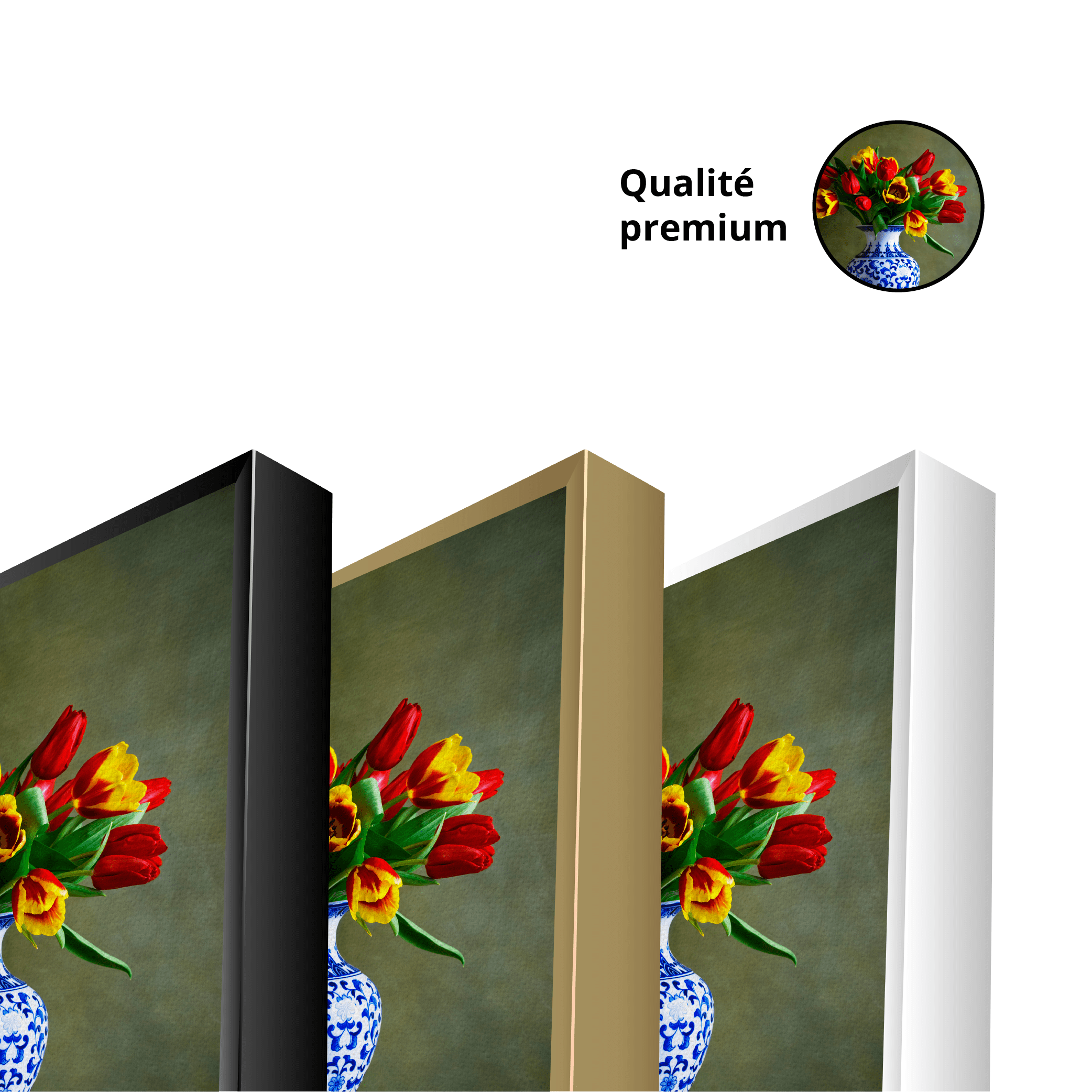 Grâce à sa finition premium, ce tableau trouve facilement sa place dans un salon, une chambre ou un espace de travail recherchant une décoration florale moderne et expressive.