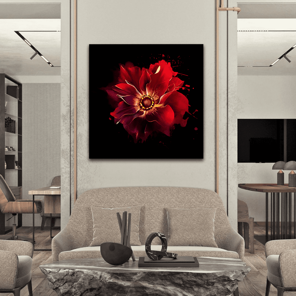 Le tableau CRIMSON BLOOM met en avant une fleur rouge intense au design moderne et expressif. Les teintes profondes, les contrastes élégants et la texture florale travaillée créent une présence visuelle forte, idéale pour donner du caractère à un espace.