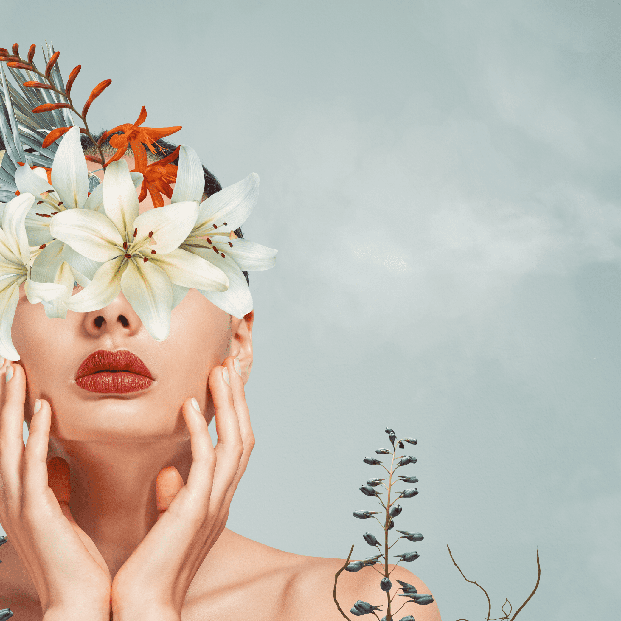Le tableau FLEUR ÉTERNELLE représente une femme mise en valeur par une composition florale élégante, créant un mélange fort entre portrait artistique et esthétique florale. Les teintes équilibrées, la lumière maîtrisée et les détails expressifs donnent une ambiance douce, moderne et captivante.