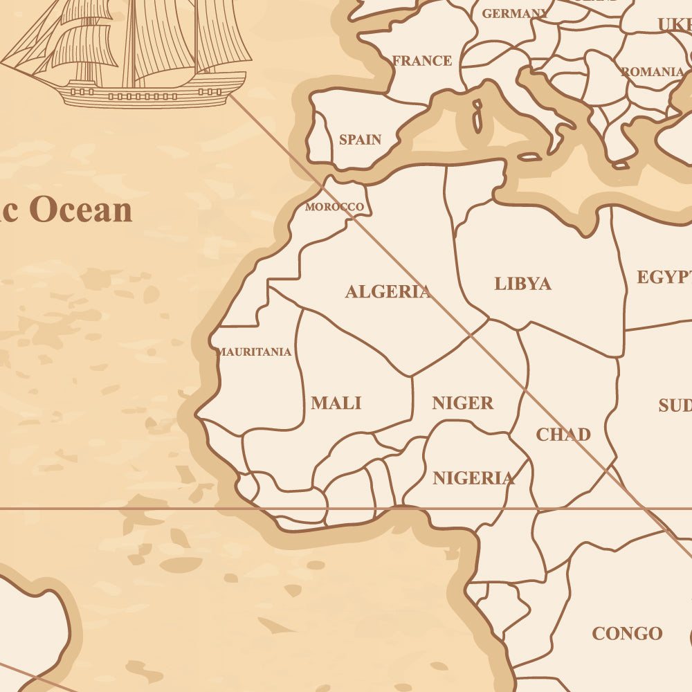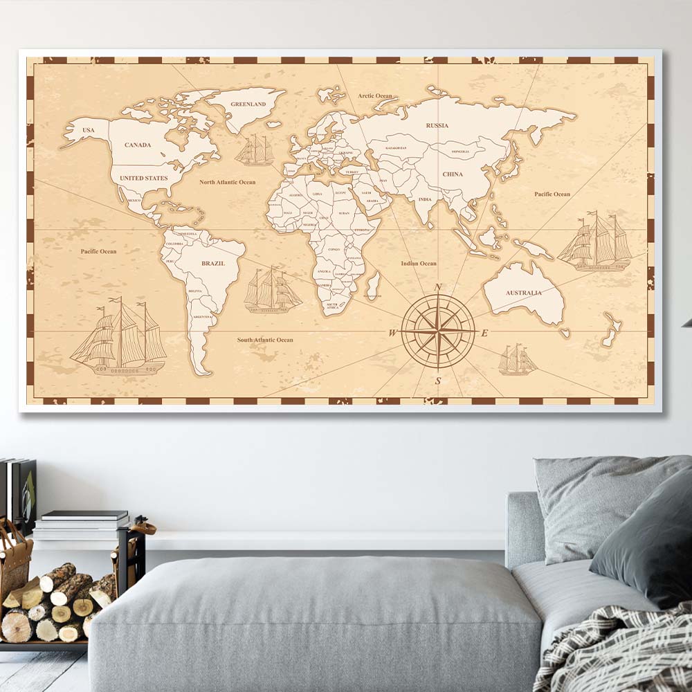 Le tableau LEGACY ATLAS présente une carte du monde antique, avec des textures vieillies, des couleurs sépia et un design élégant et détaillé. Cette œuvre apporte une atmosphère historique, artistique et raffinée à n’importe quel intérieur.