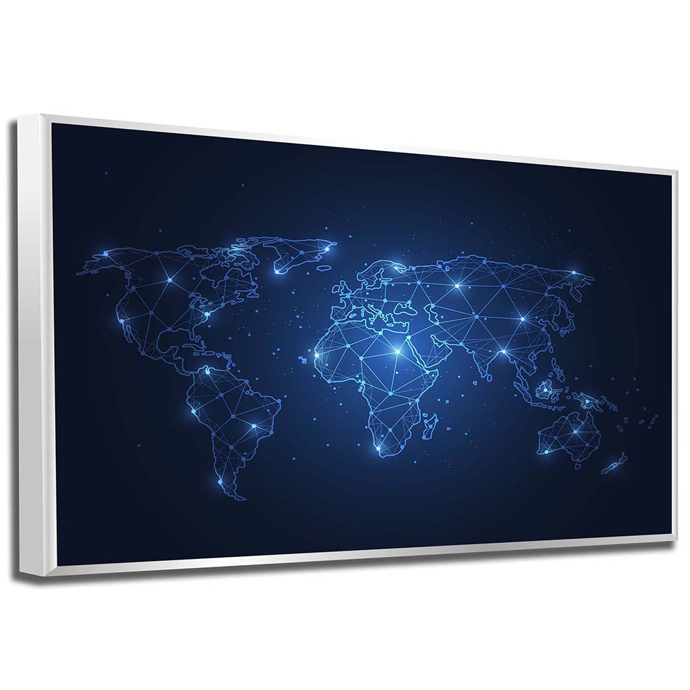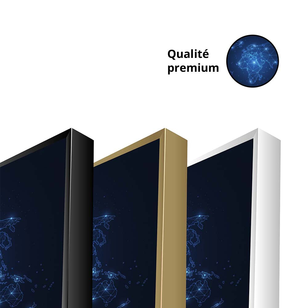 Le tableau NEON WORLDMAP affiche une carte du monde futuriste avec un design lumineux, minimaliste et ultra-moderne. Les lignes géographiques sont stylisées en accents néon, créant une ambiance technologique, avant-gardiste et visuellement percutante.