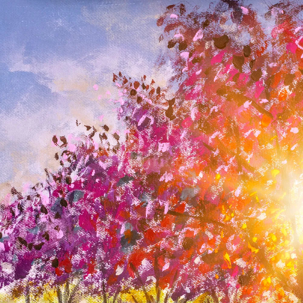 Le tableau SPRING RAYS capture la lumière douce du printemps sur des fleurs éclatantes et un paysage verdoyant, dans un style contemporain et poétique. Les couleurs lumineuses et la composition délicate créent une ambiance fraîche, apaisante et inspirante.