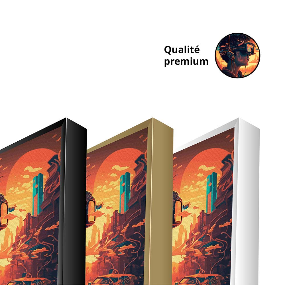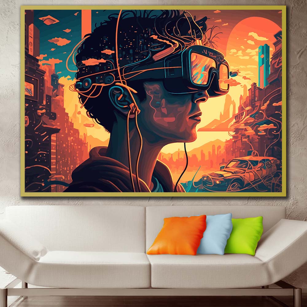 Avec sa finition premium, ce tableau s’intègre parfaitement dans un salon, une chambre ou un bureau, idéal pour les amateurs de art numérique, technologie, réalité virtuelle et décoration murale moderne.