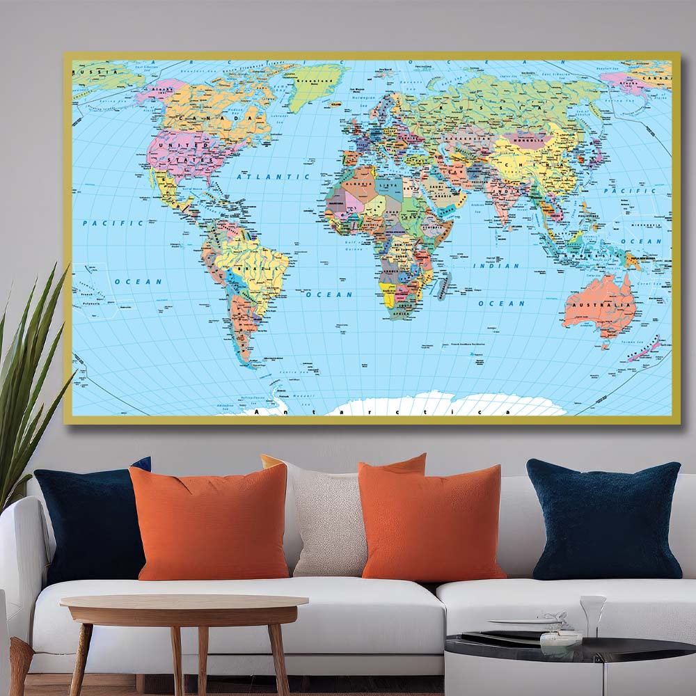 Avec sa finition premium, ce tableau s’intègre parfaitement dans un salon, un bureau, une chambre ou un espace d’étude. Idéal pour les passionnés de géographie, de voyage et de décoration murale moderne.